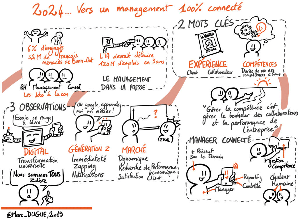 En matière de compétence, le digital a créé le plus grand choc de l’histoire; la machine bat déjà l’Homme dans de nombreux compartiments de jeu… lecture de radiographie, montage d’un dossier de crédit, contrôle qualité sur ligne, ciblage marketing… Libéré de certaines tâches, l’Homme devra développer la compétence pour en intégrer d’autres, au moins aussi critiques : utilisation des outils, décisions accompagnées par la machine, écoute du client, recherche des améliorations, développement du service… Quant au manager, il est libéré des reportings, des contrôles, des normes, de la planification, …et peut se focaliser davantage sur la montée en compétence de ses équipes, les décisions que la machine ne peut pas prendre pour lui ; et ce qui exige le plus de compétences humaines : jugement personnel, réflexion, interprétation, créativité, innovation, terrain, responsabilité, bon sens…